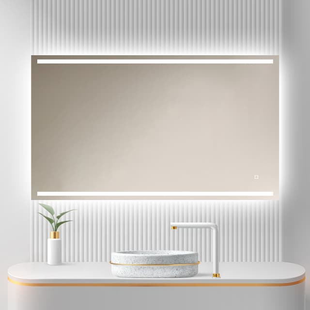 Op zoek naar een royale badkamerspiegel die zowel stijlvol als functioneel is? Maak kennis met de Badkamerspiegel Felix 120×70. Deze luxe spiegel combineert krachtige directe LED-verlichting boven en onder met een subtiele indirecte lichtgloed rondom. Ideaal voor zowel praktische verzorgingsmomenten als ontspanning na een lange dag.