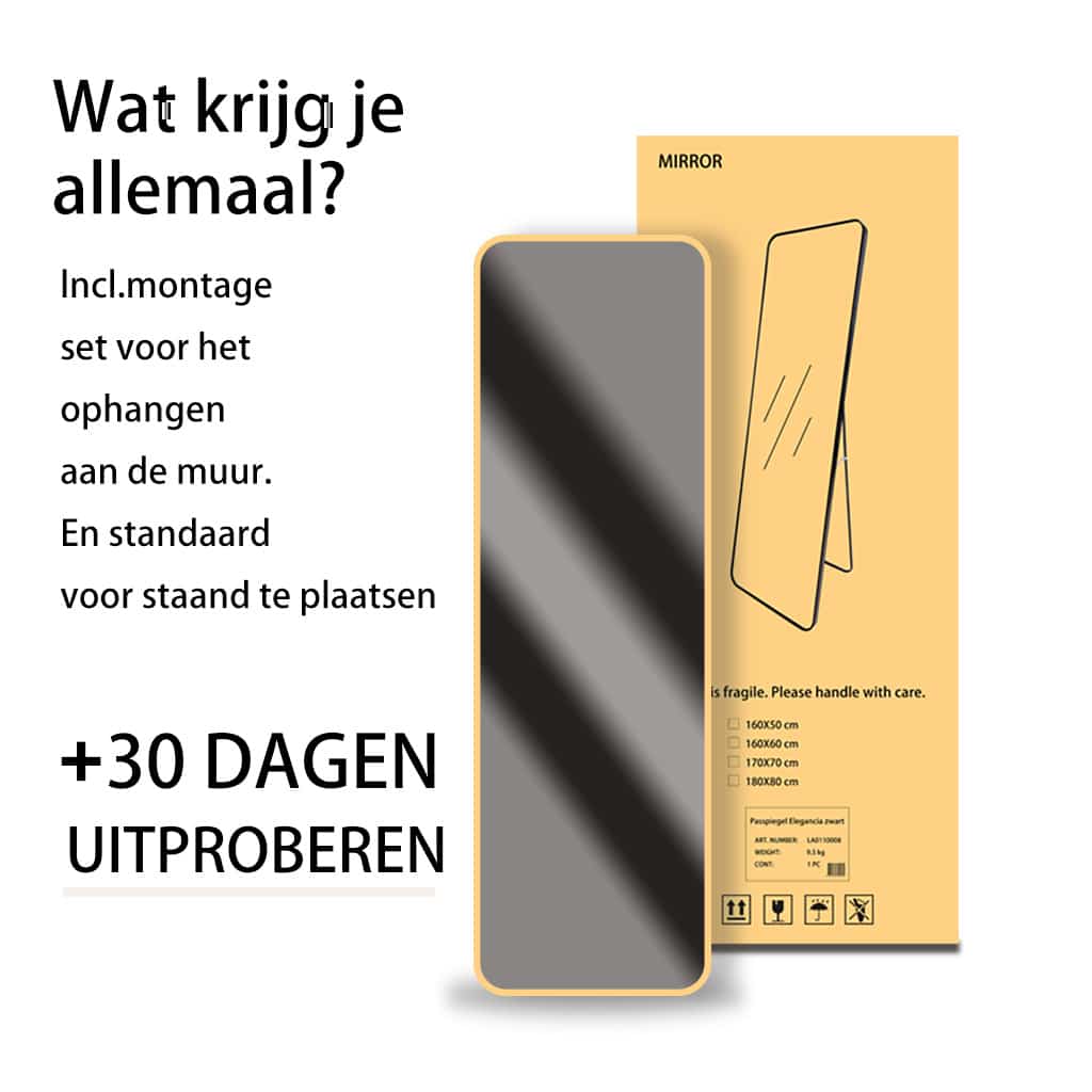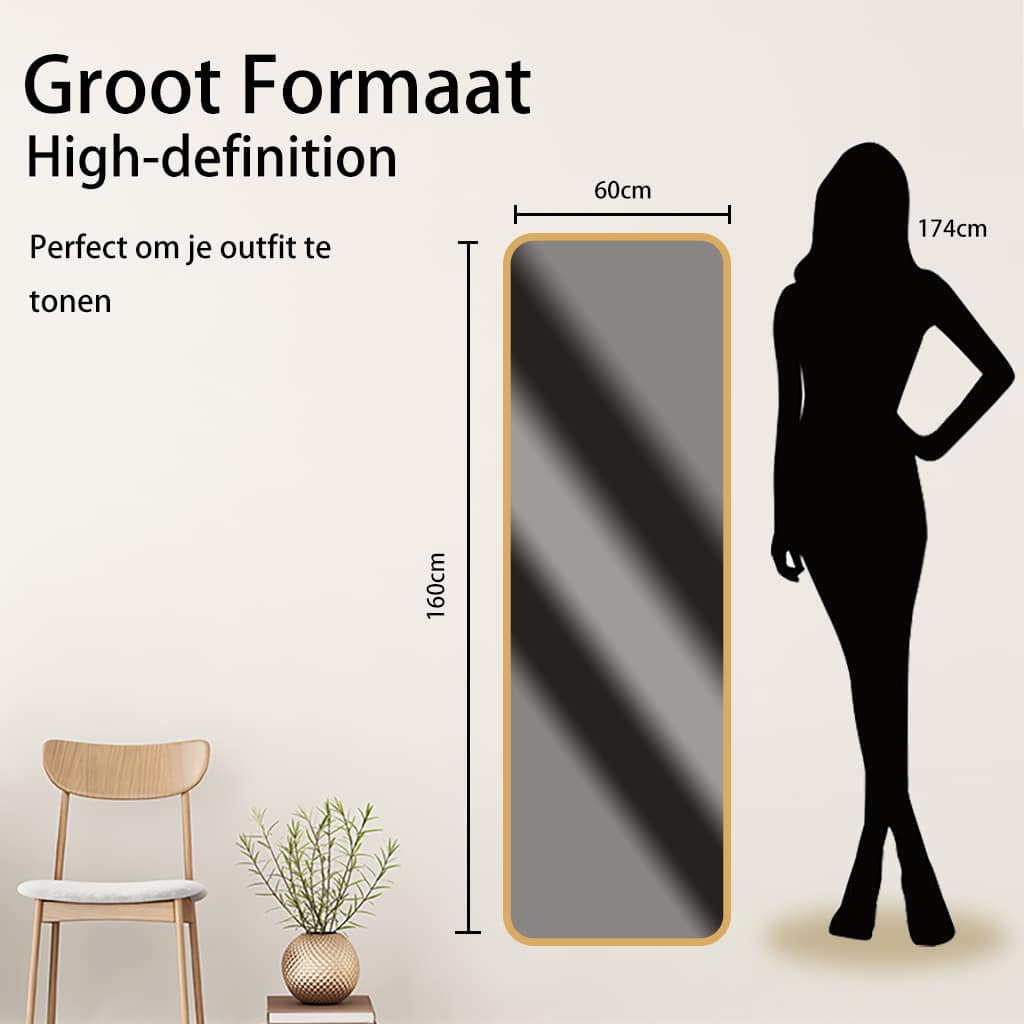 Met een formaat van 160×60 cm geeft de spiegel een compleet beeld van top tot teen. Ideaal voor dagelijks gebruik en perfect voor modebewuste gebruikers.